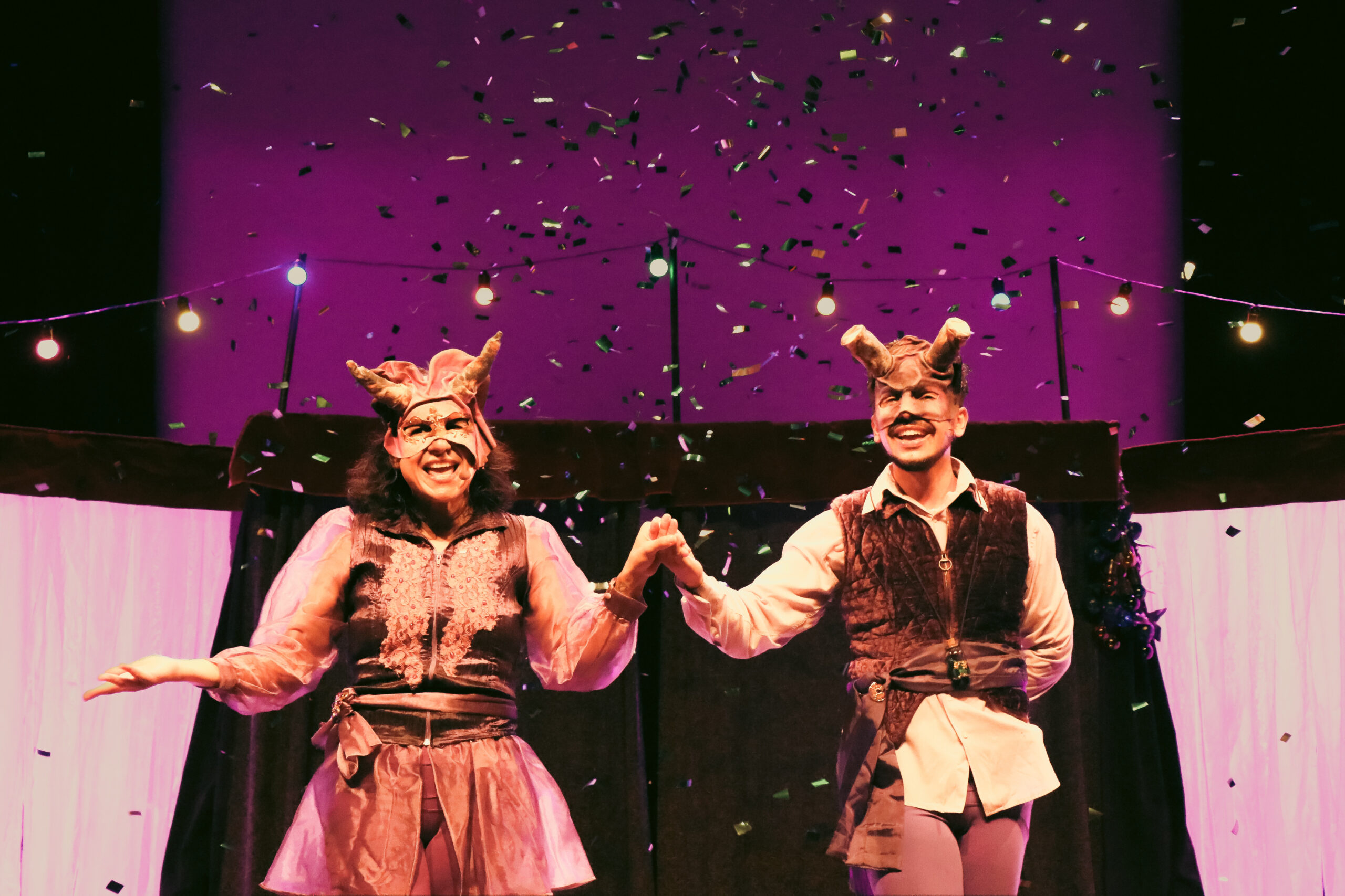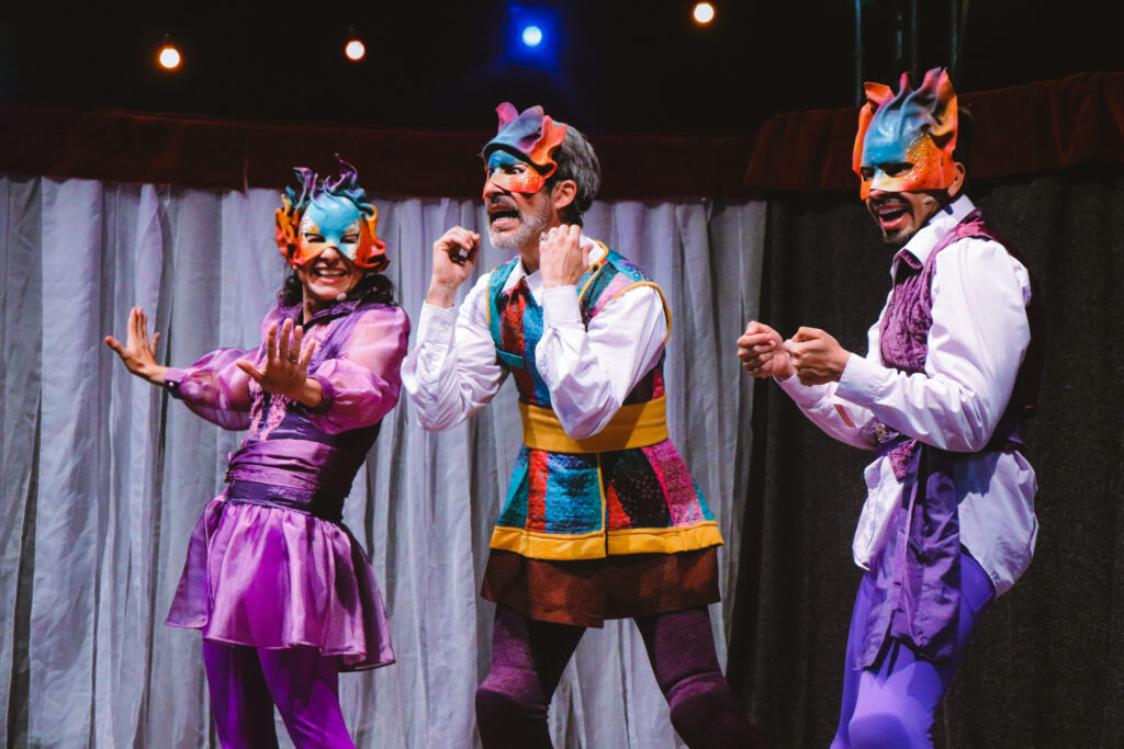 Com direção de Suzi Martinez e elenco de Clarissa Siste, Guilherme Ferrêra e Henrique Gonçalves, a dramaturgia original é inspirada no conto popular “O casamento de João Bobo e a Princesa Chifruda”. O espetáculo é resultado de uma pesquisa sobre o universo tradicional das máscaras e da Comédia Dell’arte, com cenografia que remonta ao teatro mambembe italiano.