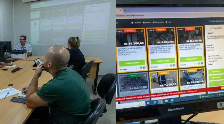 Foram ofertados nove lotes, compostos por sucatas de mobiliários e veículos, todos arrematados durante a disputa online.