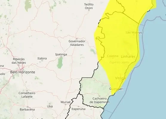 Inmet coloca 49 municípios capixabas em alerta para chuvas de até 50 mm e ventos fortes neste domingo (12); instabilidade afeta a Grande Vitória e o Norte do Estado.
