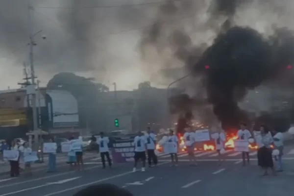 Manifestação bloqueia avenida em Jardim América e provoca congestionamento até a Segunda Ponte.