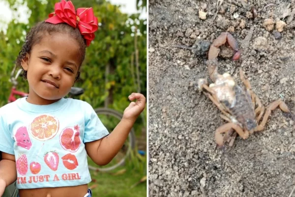 Uma menina de 3 anos, identificada como Isabelly Almeida Silva, está internada em estado grave após ser picada por um escorpião na localidade de Santa Maria, zona rural de São Mateus, no Norte do Espírito Santo.