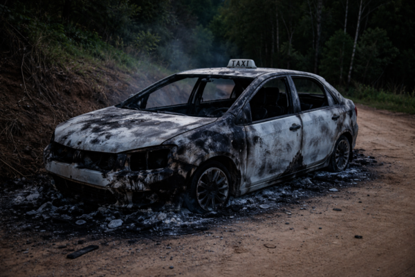 Motorista foi rendido durante corrida, mantido encapuzado e liberado após cerca de uma hora; veículo foi encontrado queimado.