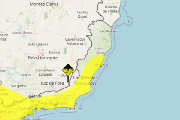 Inmet coloca 49 municípios capixabas em alerta para chuvas de até 50 mm e ventos fortes neste domingo (12); instabilidade afeta a Grande Vitória e o Norte do Estado.