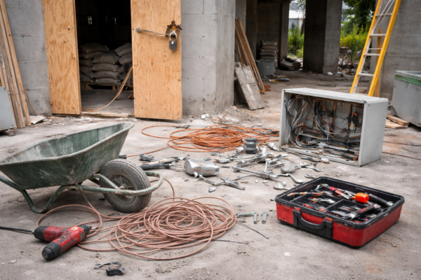 Criminosos furtam materiais e equipamentos de construção durante a madrugada em Vila Velha.
