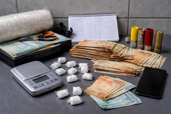 Suspeito tentou fugir da abordagem policial e foi detido com entorpecentes, dinheiro e materiais ligados ao tráfico.